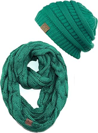 C.C Unisex Soft Stretch Chunky Cable Knit Beanie and Infinity Loop Scarf Set