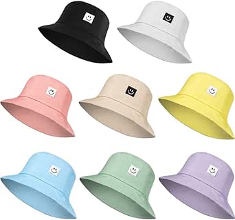SATINIOR Smiling Face Bucket Hat Cute Bucket Cap Beach Sun Hat Summer Travel Bucket for Women Men (Assorted Colors, 8 Pieces), Assorted Colors, M