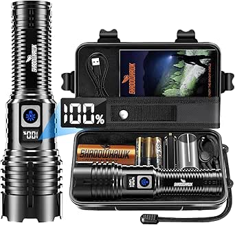 Shadowhawk Flashlight Rechargeable TorchLight, 20000 Lumens Flash Light Led flashlights Tactical, XHM77.2 Led Torch Light High Power, USB Handheld Powerful Torches for Camping Hiking Emergency
