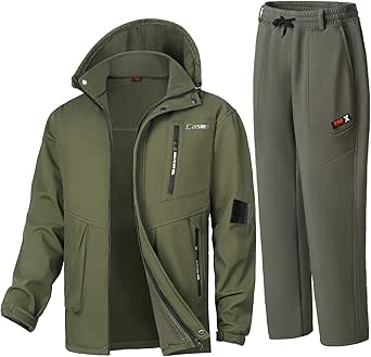casme Mens Thermal Jacket Set Coat and Pants Heavy Duty Windproof Lined Hooded Winter Outdoor Sportswear for Hiking Mountaineering Camping