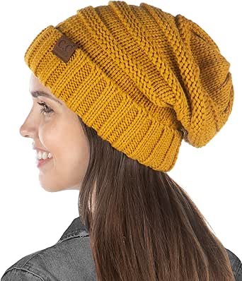 Funky Junque Exclusives Womens Beanie Oversized Slouchy Hat Ribbed Knit Warm Cap