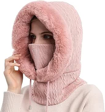 Cap for Women, Women Winter Beanie Hats One Piece Slouchy Warm Hooded Scarf Fleece Winter Balaclava Pullover Knitted Hat Mask Set