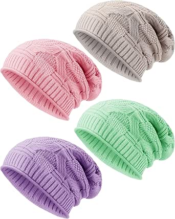 4 Pieces Knit Slouchy Beanie Hat for Women Men Oversized Soft Warm Winter Beanie Hat Chunky Stretch Cable Knit Beanie