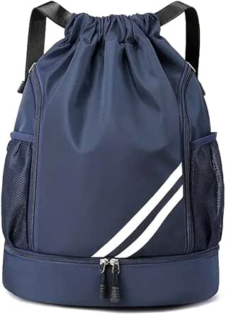 Travel Sport Casual UNISEX Drawstring Backpack with Zipper, Large Capacity, Adjustable, Multiple Compts, Mesh Pocket for Gym, School, Laptop, Travels, Basketball & Football Outdoor