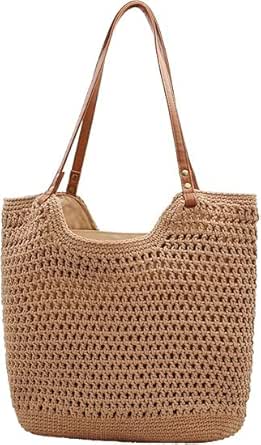 Crochet Beach Bags for Women, Large Capacity Summer Woven Beach Tote Bag Handbags Shoulder Bag, Handmade Boho Knit Tote Bags for Beach Travel Holiday Vacation Work Shopping Daily Use