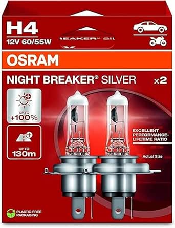 درباره این مورد a-spacing-mini"> OSRAM Night Breaker Silver H4: عمر مفید و نسبت عملکرد عالی MOREright BRIGHTN% پاسخ بهتری را تا 10% روشن تر ارائه می دهد. زمان در مقایسه با حداقل استاندارد مورد نیاز قانونی تا 130 متر طول پرتو نور: برای دید بهتر